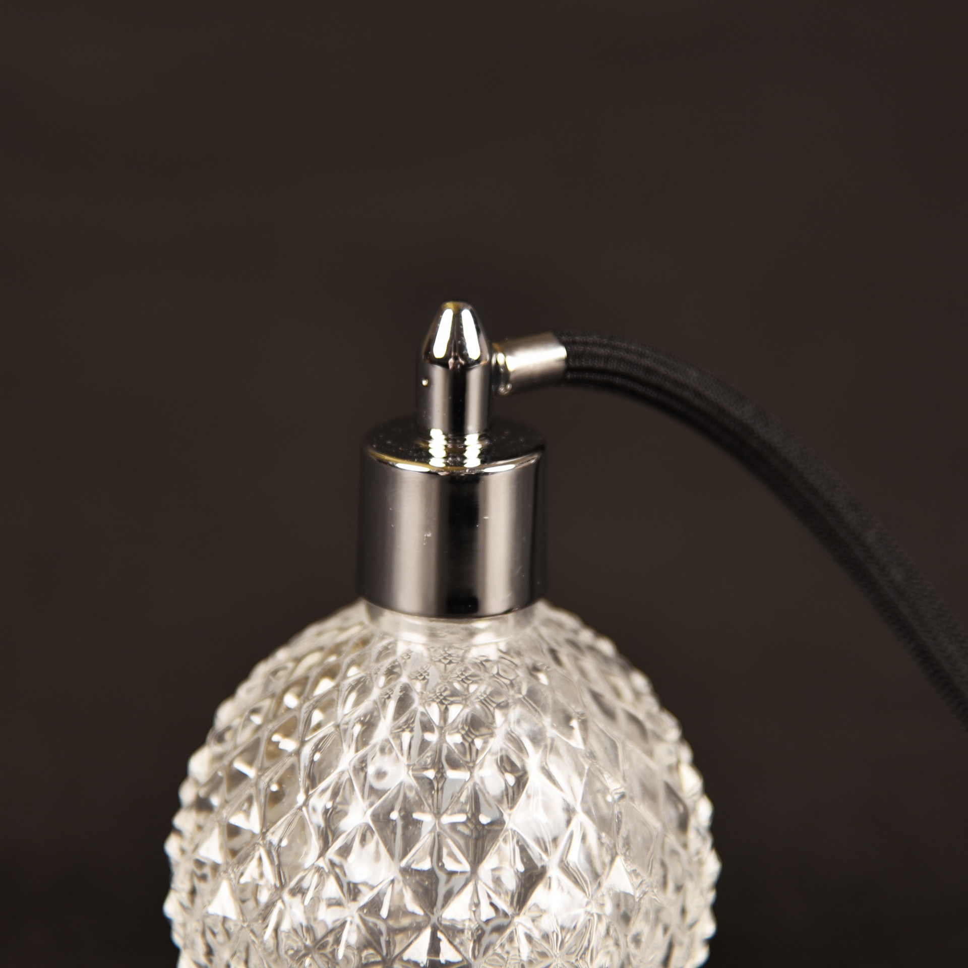 Frasco de perfume vintage em vidro transparente com pulverizador manual preto